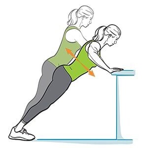 - Hold the edge and lean back like a small squat.